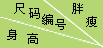 相应的尺码号。假如您的腰围为2.4尺,身高为176cm,对照上表,您的胖瘦属别为中(M),身高